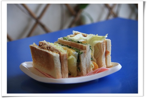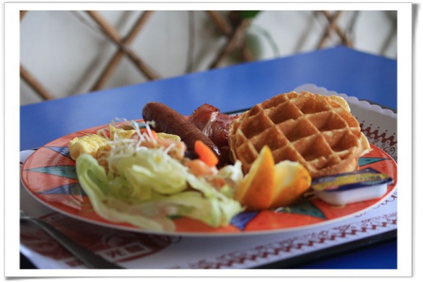 ▽我們點了 燻雞三明治及鬆餅 還蠻豐盛 好吃的,但點的飲料竟然是用路邊飲料攤的塑膠杯裝 一整個 fu 都沒了...