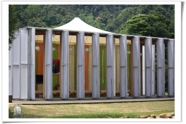紙教堂 是由58根紙管 建構出一個可容納80個座位的橢圓形空間(這紙管是從日本鷹取Paper Dome紙教堂運回台灣的, 它象徵 日本阪神大地震後 重新再起、社區整合的意義, 現在它矗立在桃米社區 也是有同樣的意義)
