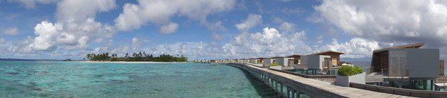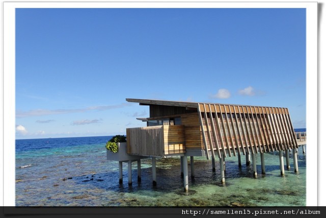 ▽ Aqua villa 的外觀 正面及背面, 不管那一面都被大海擁抱著 (下面那張是退潮的時候, 有些珊瑚都露出水面了, 所以此時最好不要下海, 不然就好看了...)