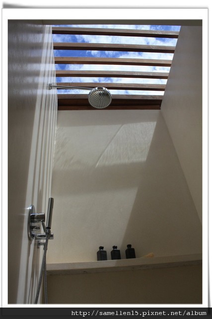 ▽shower room 雖然看不到大海, 但仰頭可到藍天 白雲 或 星空.