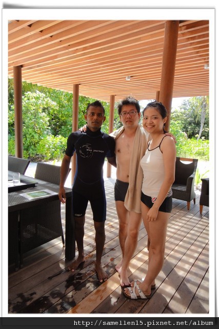 另外 Alila 的深潛環境 也是出名的, 他們是從 Dawn Jetty 就直接下去了, 現在站著的這位 是深潛中心的經理.