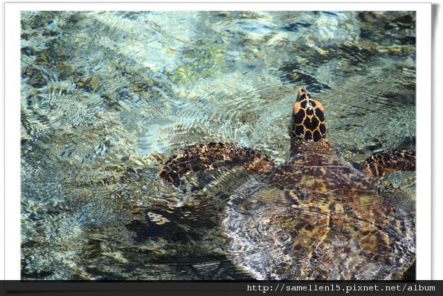 ▽ 這隻 海龜真可愛, 還探出頭 來讓我們確認 我們沒看錯 --- .偶就素海龜 海龜就素偶啦! ( 海龜探出頭, 應該是為了呼吸吧)