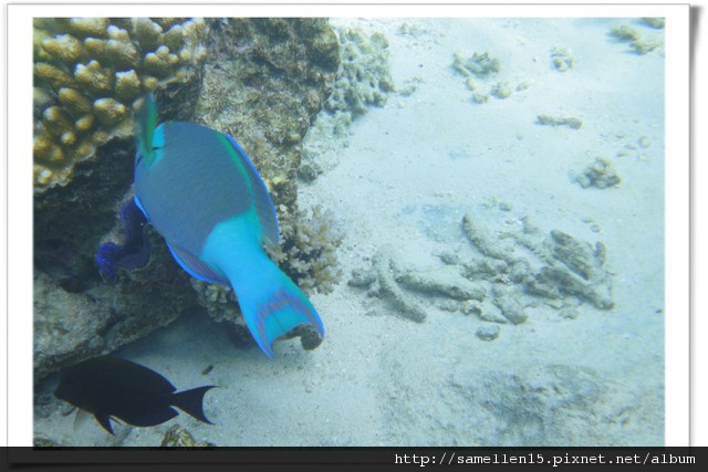 ▽ 還有 還有這肥肥 的鸚鵡魚, 有時 走在 木棧道的時候 就會看到他們 成群結隊, 注意哦, 是 成 群 結 隊 的在吃珊瑚吧! ( 真為他們高興 是生長在這地方, 而不是台灣沿海, 昨天晚上 去吃燒烤時, 在那裡 就看到他們的朋友, 好幾隻地躺在碎冰裡