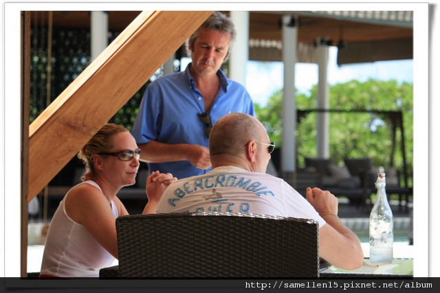 ▽ 這對 也是跟我們同一天抵達 Alila 的, 那女的都一直拿著 紅橡皮圈的 canon 單眼相機, 架勢十足哦!