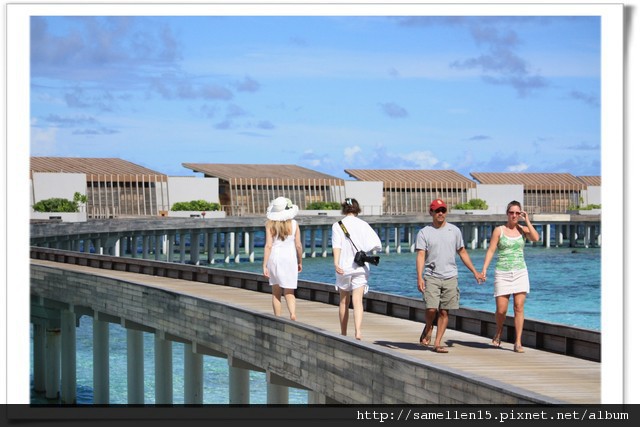 ▽ 很少有機會 能看到兩對人 在 Jetty 擦身而過, 背對我們的是 一對母女啦, 帶帽子的是媽媽, 爸爸應該是去 深潛了吧. 面向我們的是一對剛結婚 來渡蜜月的新人, 因為那女的手上戴著一顆超大的鑽戒. 你們一定會問 我為什麼會知道這麼多事, 我告訴你們 因為我是 Super Paparazzi. 哈 哈 哈.