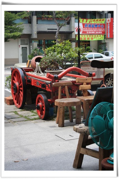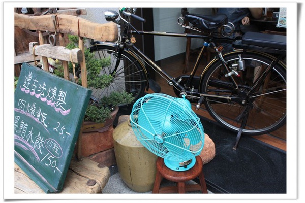 這應該是 我們第三次到 老新食堂用餐了. 餐廳的裝潢是復古的 古早台灣味的. 上菜前 先拍一下餐廳囉! ▽用古早火柴盒 拼成的店名. ▽古早 用的一些器具 ▽中藥店 裝藥的櫃子 ▽古早的 "卡棒" 及 帽子 (想起 海角七號 日籍老師拿的行李) ▽餐廳外的造景 復古腳踏車 及阿嬷時代的電扇 ▽鄉下的 牛車 整體環境不錯 有古早 fu 哦!