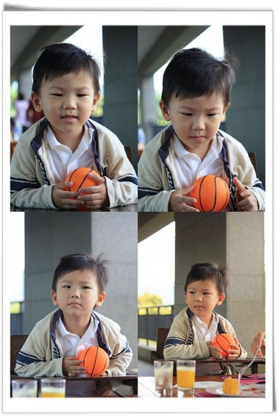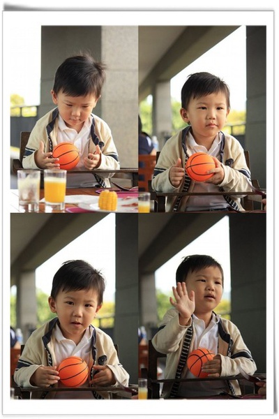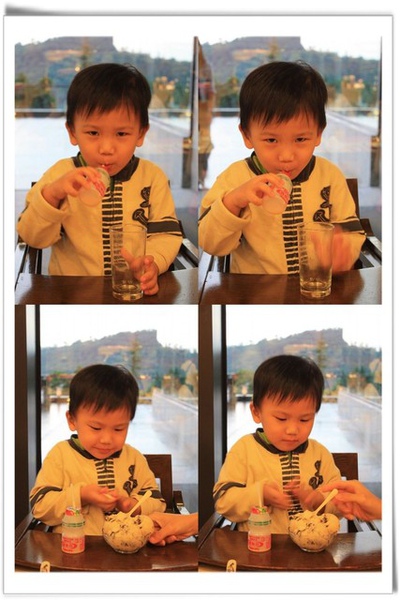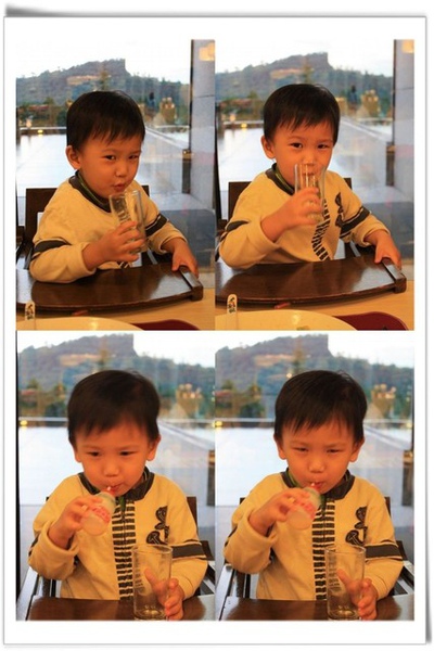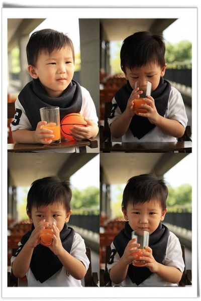 ▽一面喝 juice, 一面又玩飛碟球, 結果 差點打翻杯子, 被媽咪罵了...