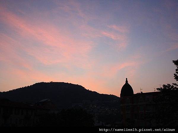 第一個早晨醒來 趕緊打開窗, "好裡加在" 沒下雨, 而且靜靜的 尼斯城 在晨曦的照映下 顯得很祥和.