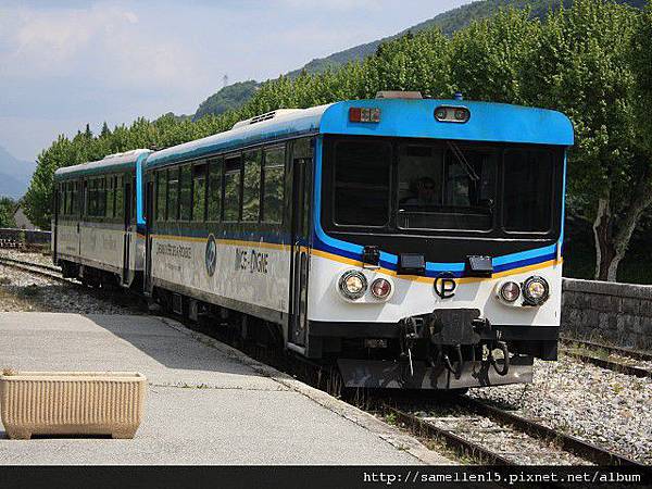 揮別了可愛的 聖保羅, 我們要前往 昂特沃(Entrevaux) 搭 百年松果列車, 這是 巨匠旅遊 南法行程主打的項目之一, 聽 導遊 Charlie講解是說: 以前火車開比較慢, 人們都會趁停車或會車時 下車撿拾松果 ..., 但現在已沒有這項功能了 因為有點危險. 目前這條路線是單純做為 觀光用途 讓遊客欣賞沿途的風景.