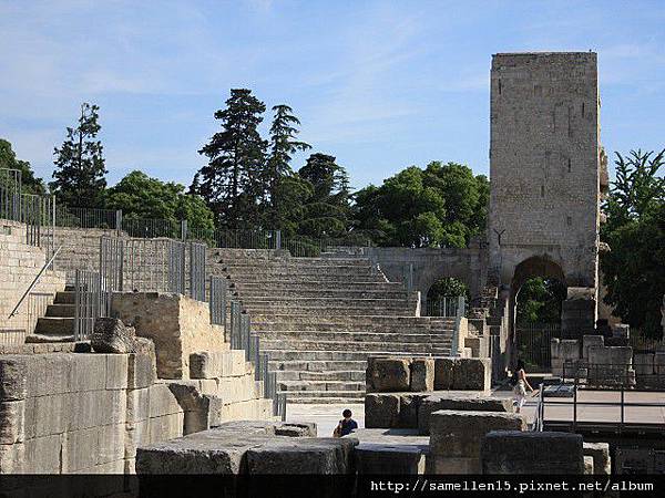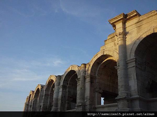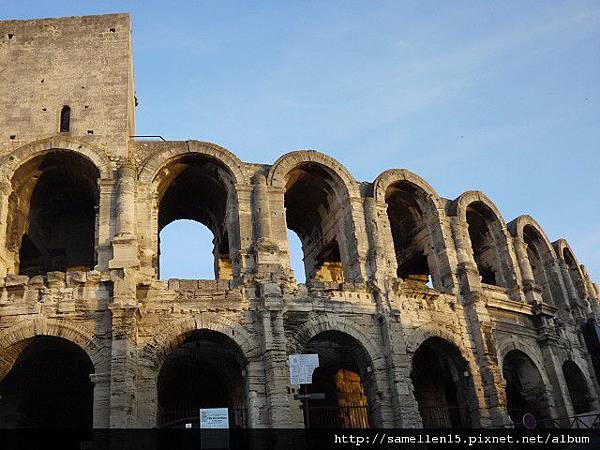 接下來 我們要來去參觀 古羅馬的遺蹟, 這 亞爾的古羅馬競技場 是現今保存最好的競技場之一. 可是 大家會不會覺得它有點太乾淨 太白了, 跟之前 在羅馬看到的競技場真的差很大..., 在羅馬的競技場 一看就是歷經好幾個時代 舊舊舊. 而亞爾的 看起來就是新. 原來是有漂白 整理過啦, 因為 在羅馬時代之後 亞爾的競技場變成了一個大市集, 大家都隨意沿著拱門搭建 增建有的 沒的, 還好整體建築並未被破壞到, 之後恢復原狀後 又經過整理 就變成這樣了...