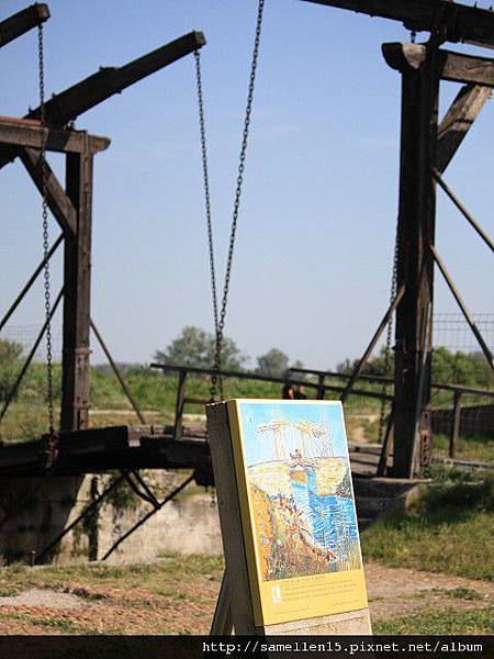 亞爾 城郊的 " The Langlois bridge at Arles with women washing", 1888. 原本的那座橋 已經毀壞, 所以當地政府 依原畫作 蓋了一座類似的 供人參觀.