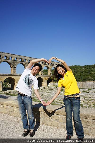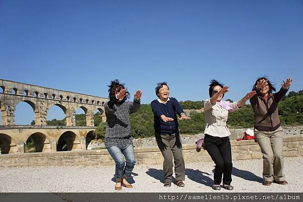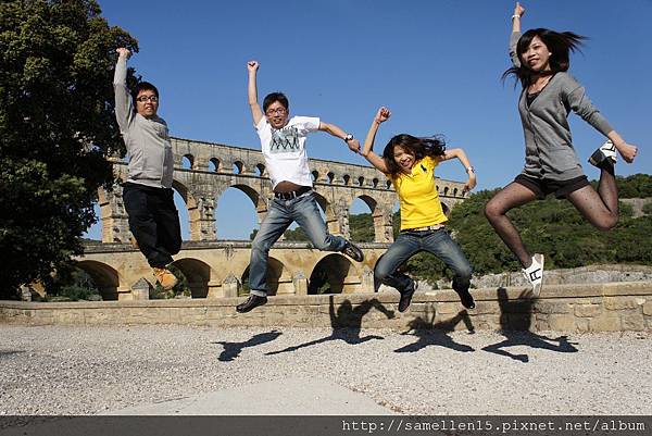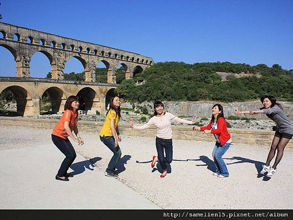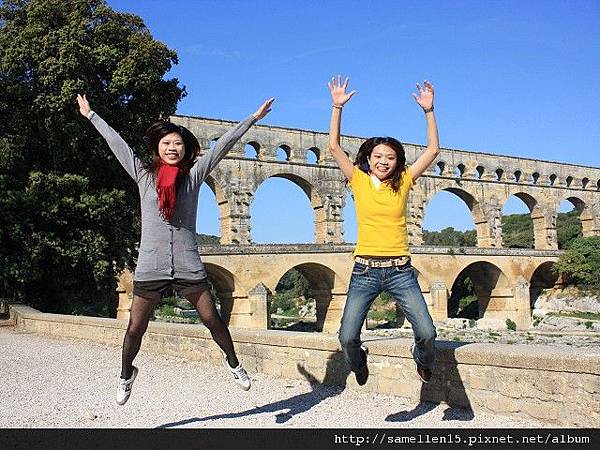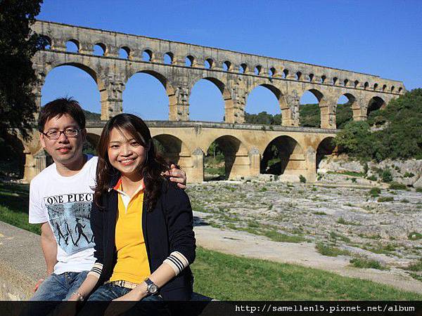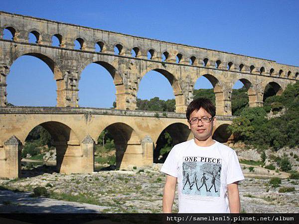 2000年前 的 高盧 (Gaul 法國的古稱) 受羅馬帝國統治時, 許多城市因而興起 當時的 尼姆(Nimes)人口急速增加, 為了解決飲用水的問題, 當局決定建造一條水道 把泉水從 Uzes 引到 Nimes. 這兩個地方相距 50公里遠 要建造一條水道連接 在現今來講都是一個大工程 何況是2000年前..., 但是 他們做到了. 古羅馬人對建築這事 真的是很厲害, 水道的 源頭 跟 盡頭 高低差為12M, 這是經過精密計算的, 這樣水流才會順流而下 不會太急也不會緩, 而且 水道本身也是一個學問, 水道(水管) 都用當地的岩石打造, 但水管的內側 則再塗抹上一層 灰泥及石灰, 這是為了防止 水 滲透出去及青苔等植物的滋生. 這總長50多公里的水道 穿山越嶺, 大部份都是埋在地底下, 只有部份在山與山之間或要過河時 會建造一座橋 也就是 水道橋 ( Aqueduct ). 在數個水道橋裡 又以 嘉德水道( Pont du Gard ) 最為壯觀. 三層式的拱門 最上層是水道, 下層則供人及馬車行走. 嘉德水道 橫跨 嘉德河 ( Gardon river ), 它是 隆河 ( le Rhone )的支流. 當初 這 嘉德水道 花了五年的時間就完工了. 可是大家會不會覺得很奇怪 南法的河流應該蠻多的 至少有 隆河及其支流啊, 飲用水的來源 應該不是問題啊? 古羅馬人為什麼還要大費周章地 蓋水道呢? 原因是 古羅馬人可是很注重衛生的, 他們認為開放的河流是骯髒的 是許多傳染病的來源, 所以寧願花時間 蓋水道 從水源頭引水.