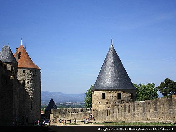 卡爾卡頌 Carcassonne 是位於法國西南部奧德河 (aude)旁的城市, 它是現今 全歐洲保存最完整的中古世紀城堡. 整座城 於 1997年被 聯和國教科文組織列入世界遺產. 從下面兩張圖就可知 它為什麼是保存最完整的城堡 --- 它擁有 雙城牆 而且有許多碉堡, 易守難攻..., 而且它 圓柱狀的塔頂 據說是現今許多遊樂場 城堡造型的藍圖.