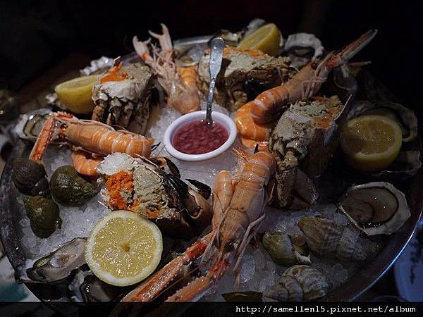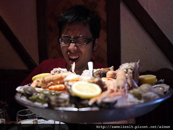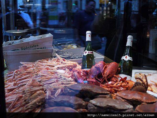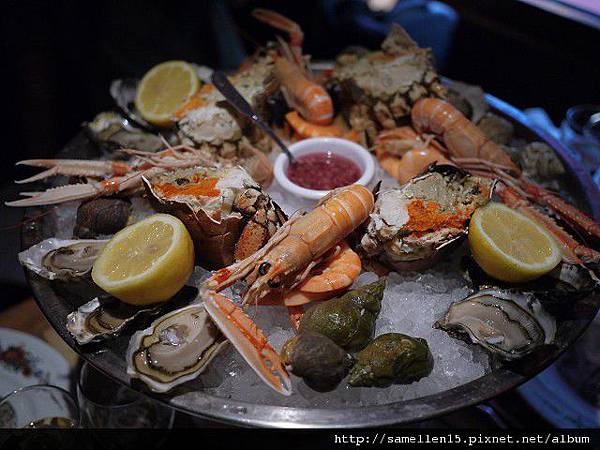 想當初 (八年前) 第一次到巴黎時 就在拉法葉百貨附近 的餐廳, 看到每桌 桌上都有一個大大的圓盤子 裡面覆蓋著的冰 而冰上面則是滿滿的生猛海鮮, 看的 Ellen 跟我猛吞口水...