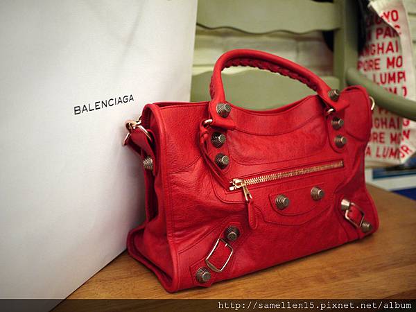 --- 六月中 Ellen的二姐 閒逛 漢神百貨時, 竟看到 Ellen的夢想包 "紅色機車包", 這是 Balenciaga 2011 F/W 的新色. Ellen 當天下班後 直衝 漢神百貨, 果然是 紅 的很正. 怎麼辦ㄋㄟ..., 已經有 Chanel 的紅色仕女包了啊!