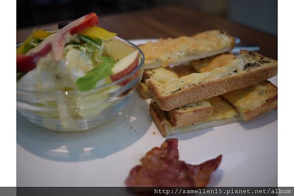 第二樂章 起士蛋醬焗土司 --- 內容是 生菜沙拉, 培根 及 起士蛋醬焗土司