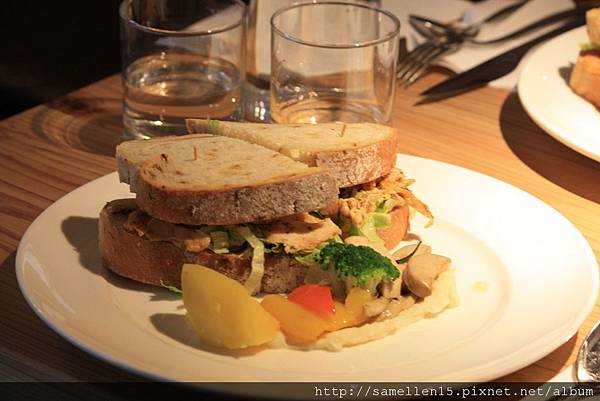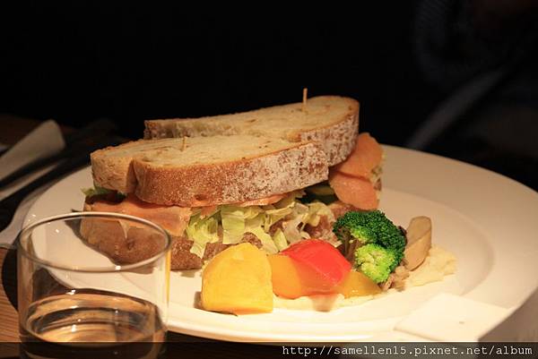燻鮭魚三明治, 好吃 ... 但內夾的生菜及餡 太鬆散了, 只要咬一口 就掉了一堆...