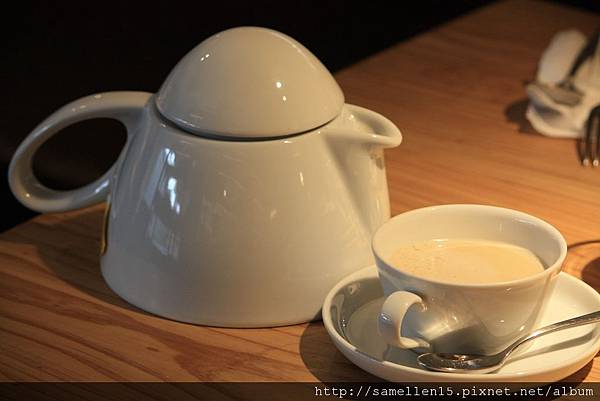 熱奶茶. 有造型的 茶壺, 但不太好握...