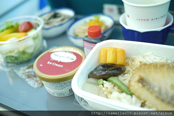機上餐點 有 哈根大使吔, 遠處的涼麵好吃.